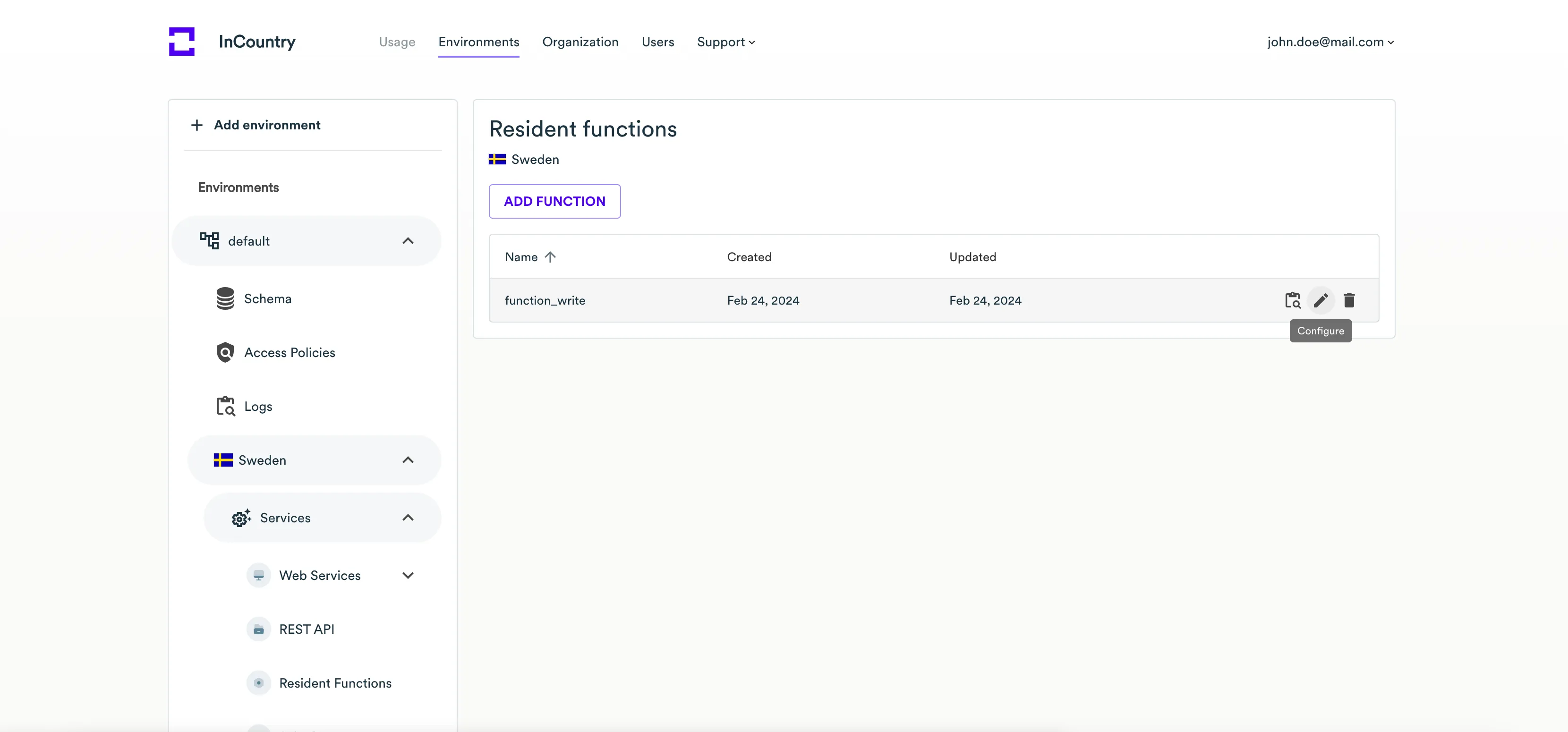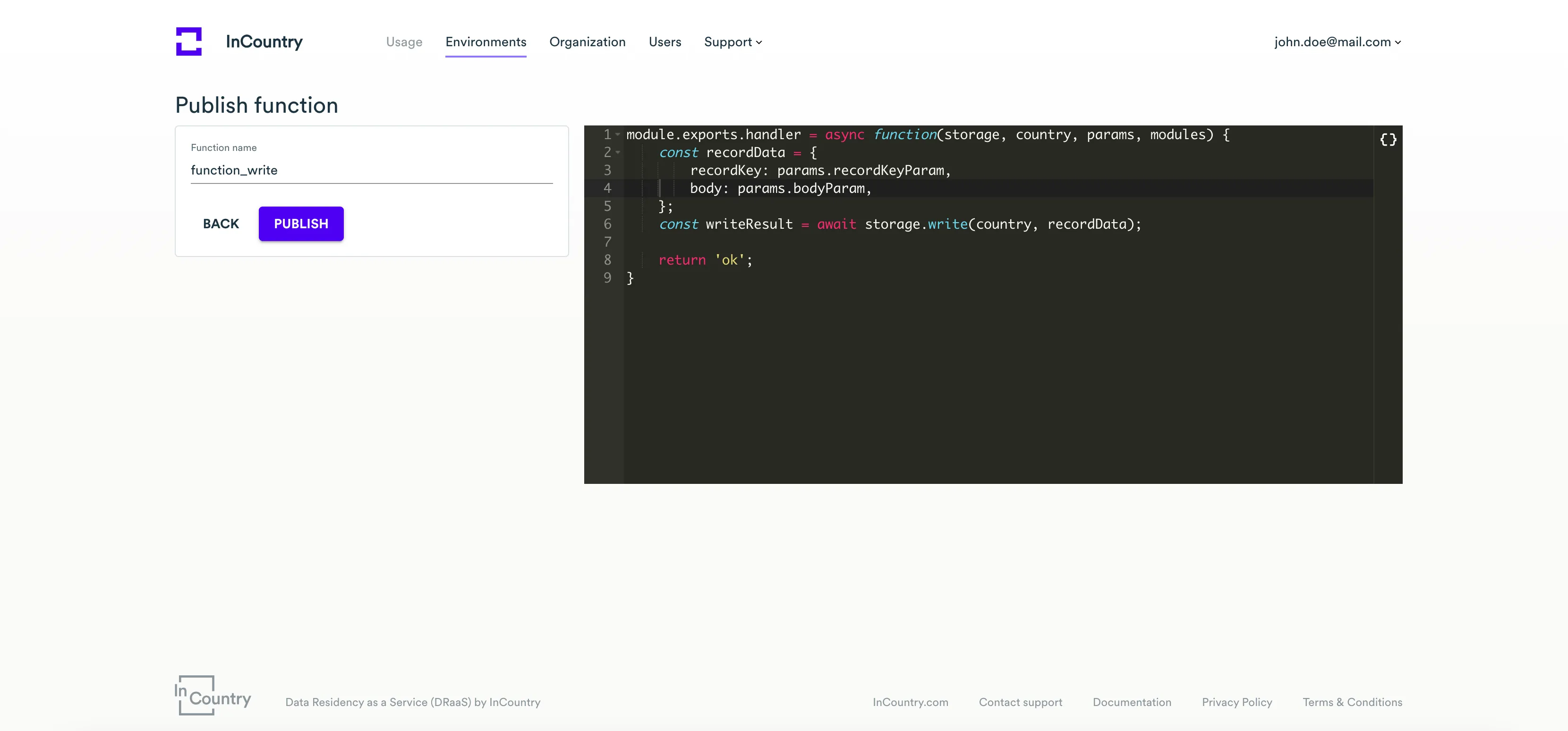 Once you have published a resident function, you can call it and execute against regulated data stored on InCountry DRaaS.