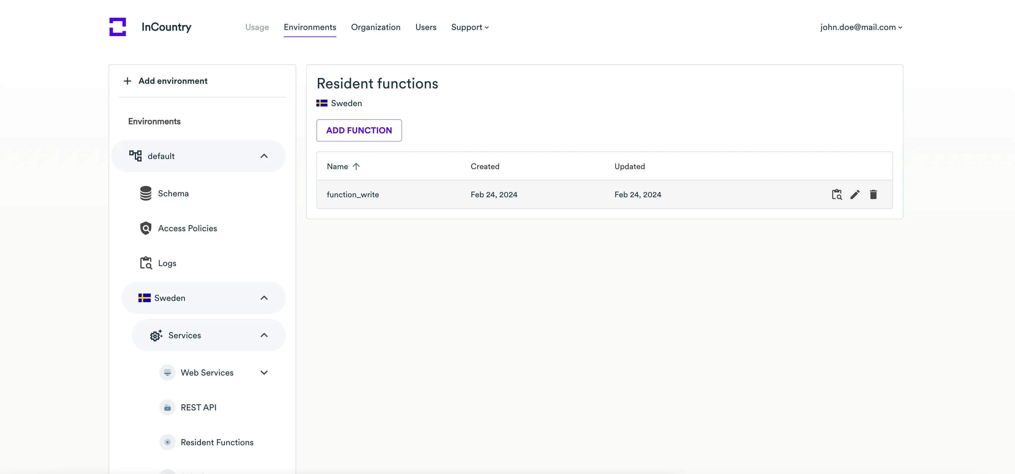 When you publish a resident function, it is saved on InCountry Portal, then passed to REST API which saves it further to PoP API on the InCountry platform.