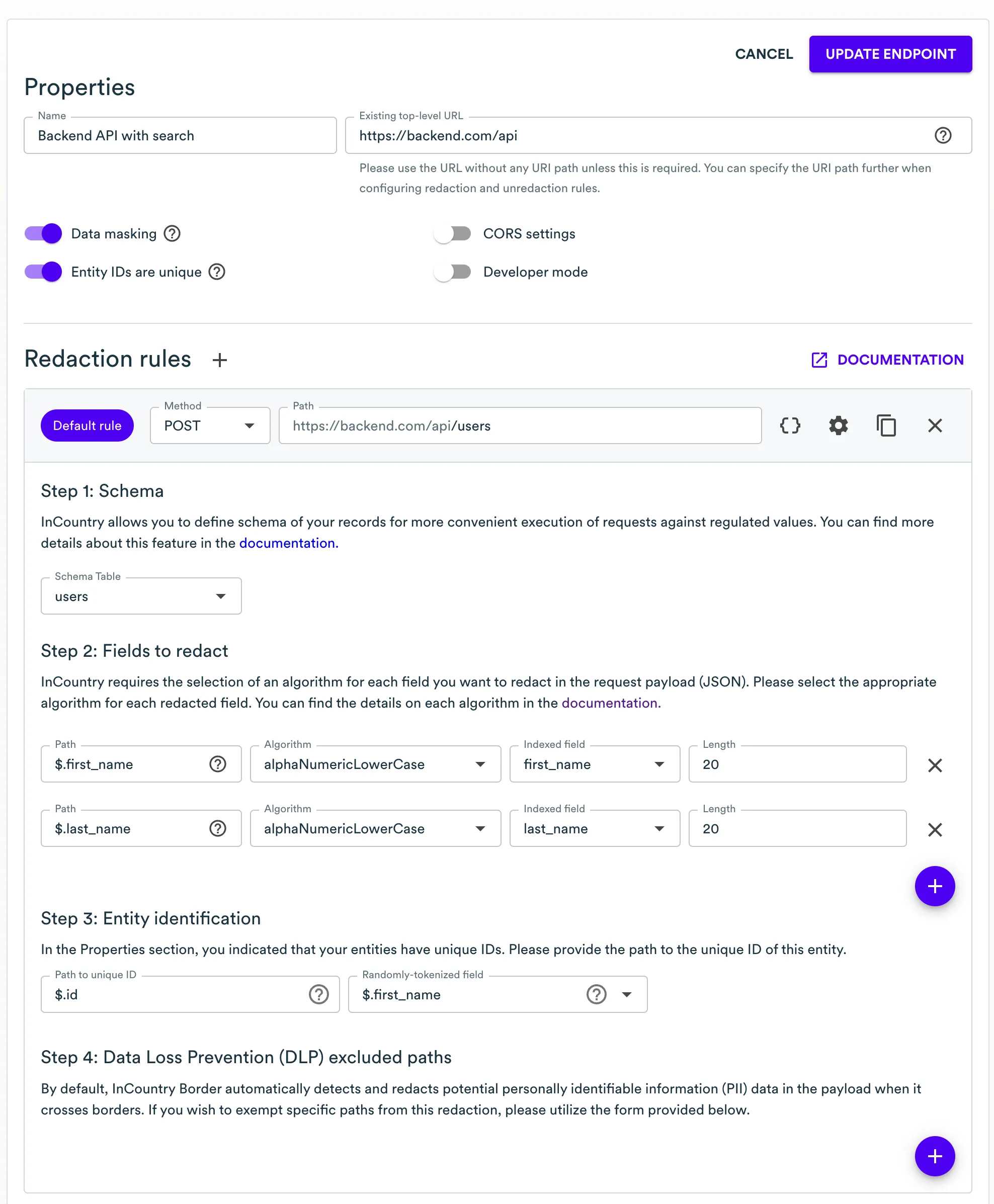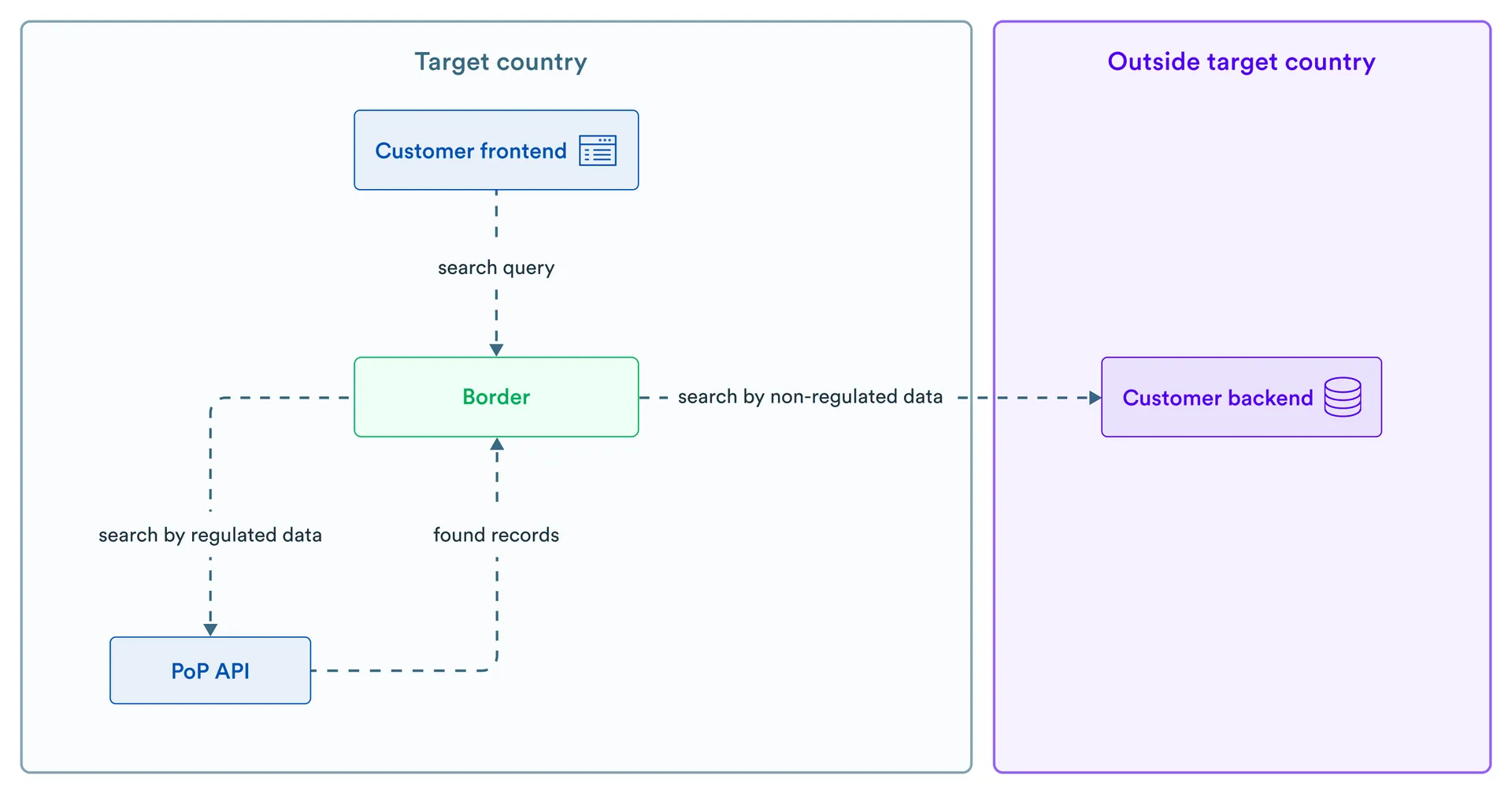 This solution allows users to search data by regulated fields stored in InCountry Vault, as well as by non-regulated fields stored in the application database.