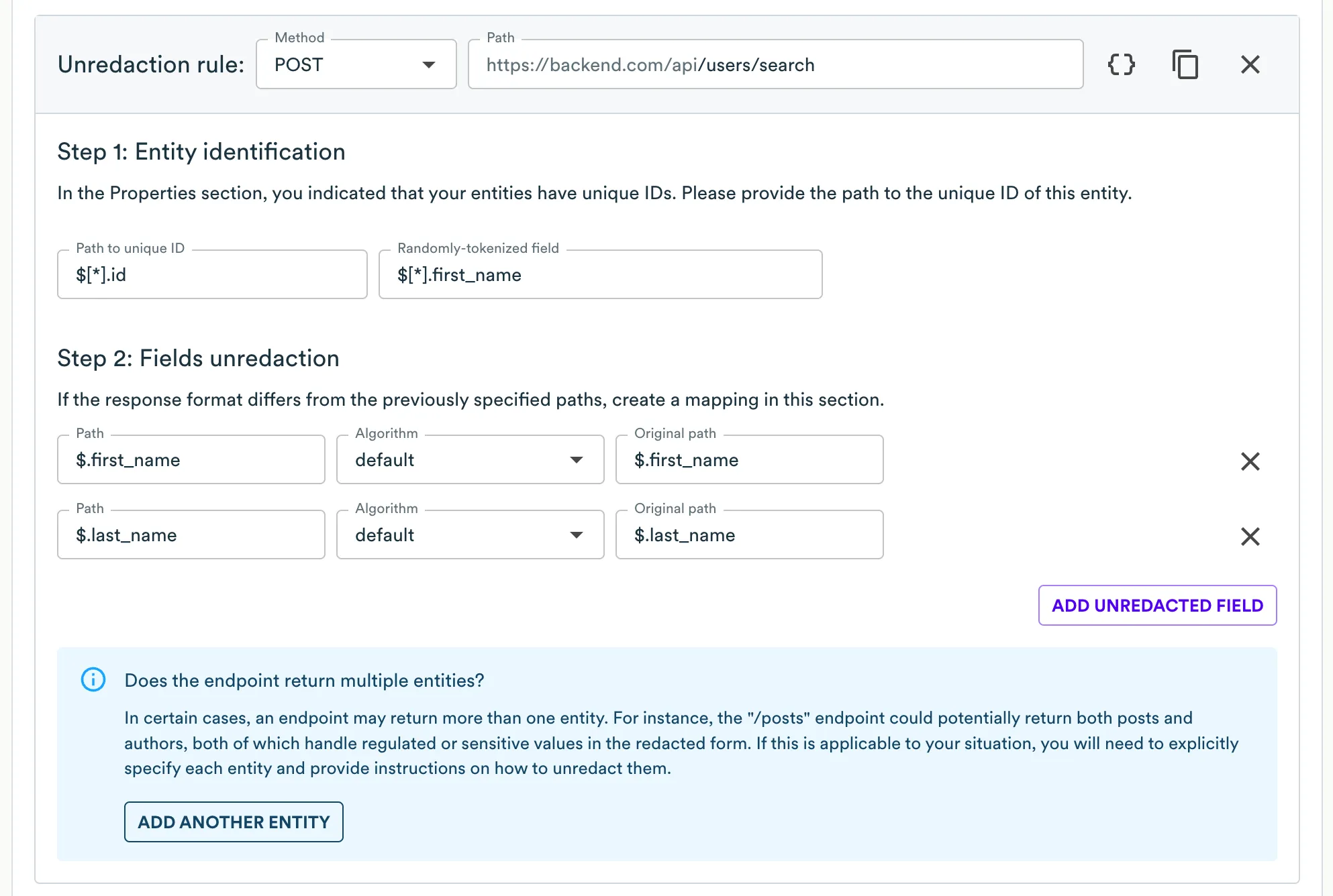 To unredact search results, a separate unredaction rule, similar to the existing one, is required.