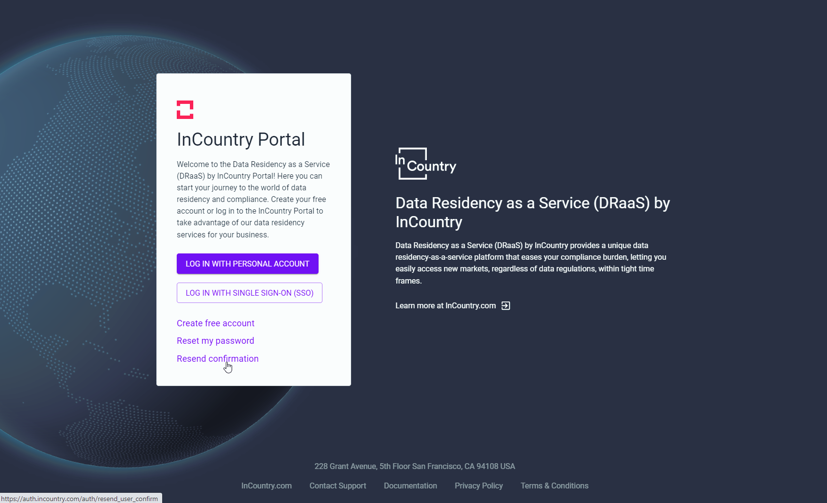 Once you have confirmed your email address, you can proceed with logging in to the InCountry Portal.