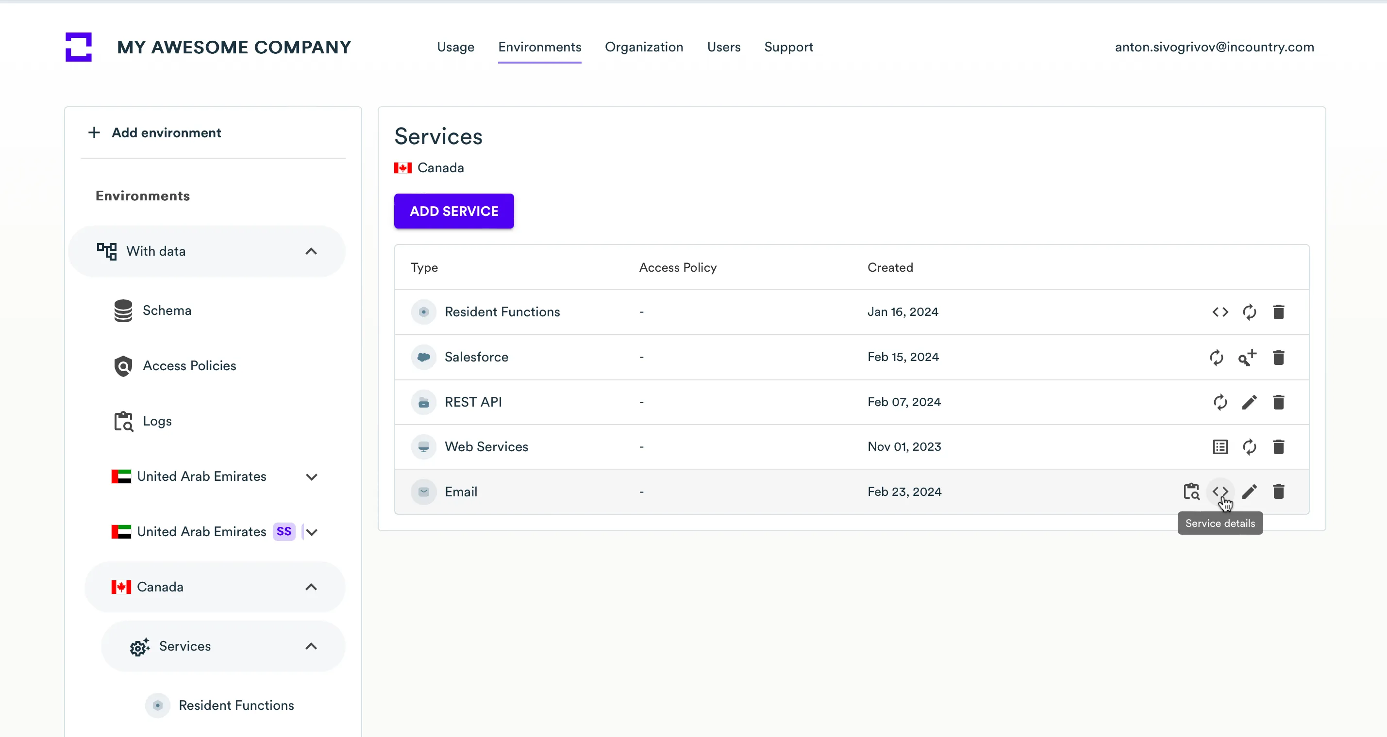 To create a new Email service for outbound emails, you should go to the InCountry Portal and follow the instructions.