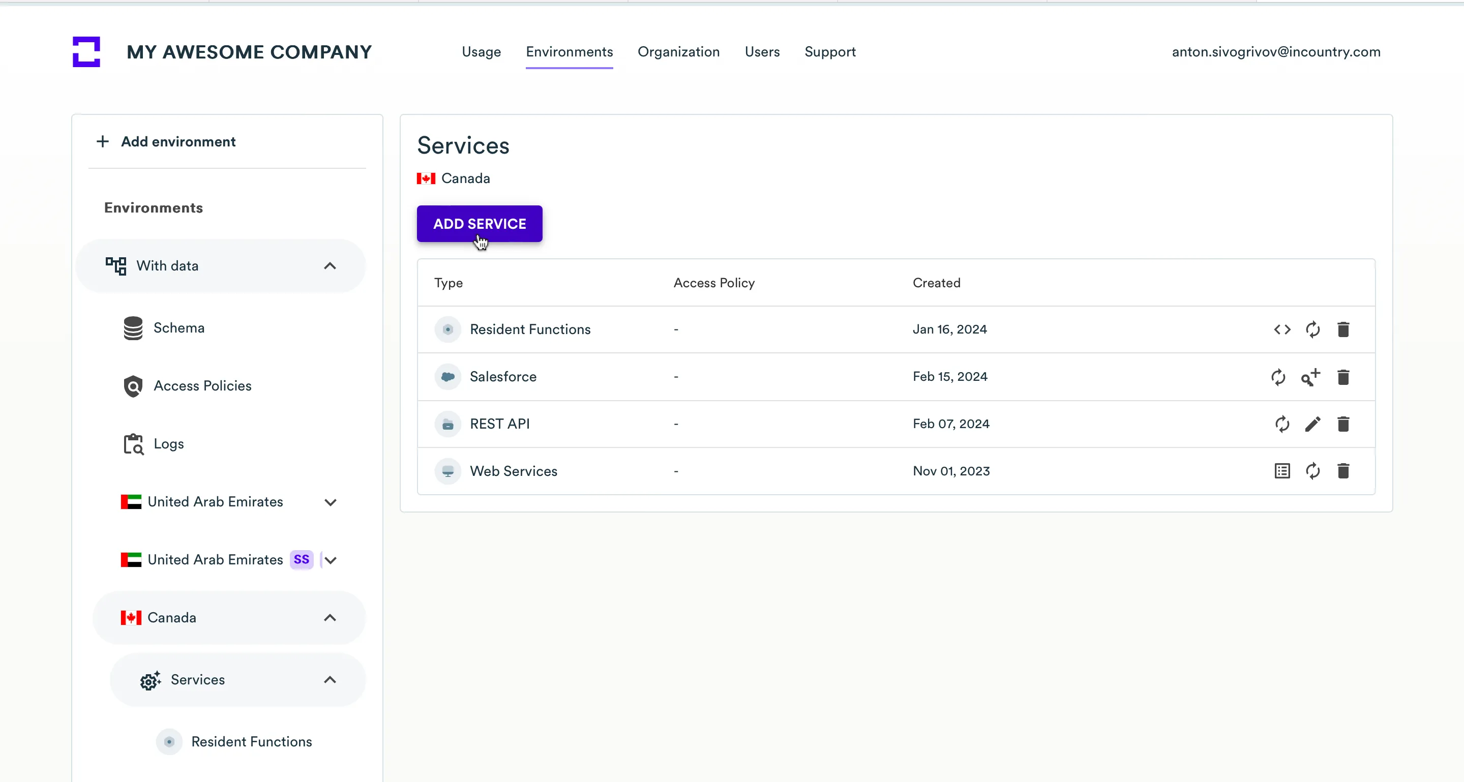 To create a new Email service for inbound emails, you should go to the InCountry Portal and follow the instructions.