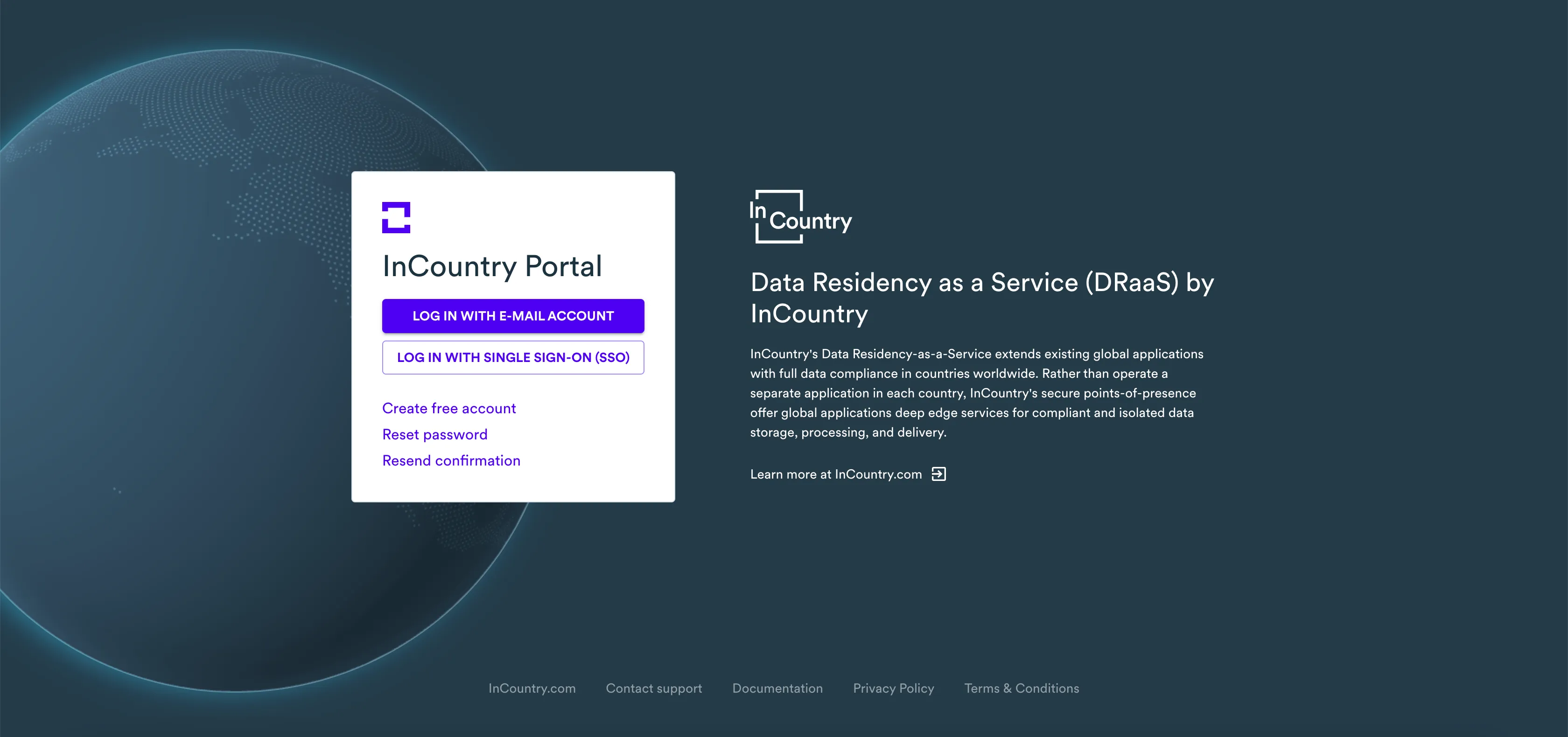 To start using the data-residency services provided by the InCountry platform, you need to sign up to the Portal. Once you create your account, you can proceed with using the InCountry Platform for managing the regulated data in different countries.