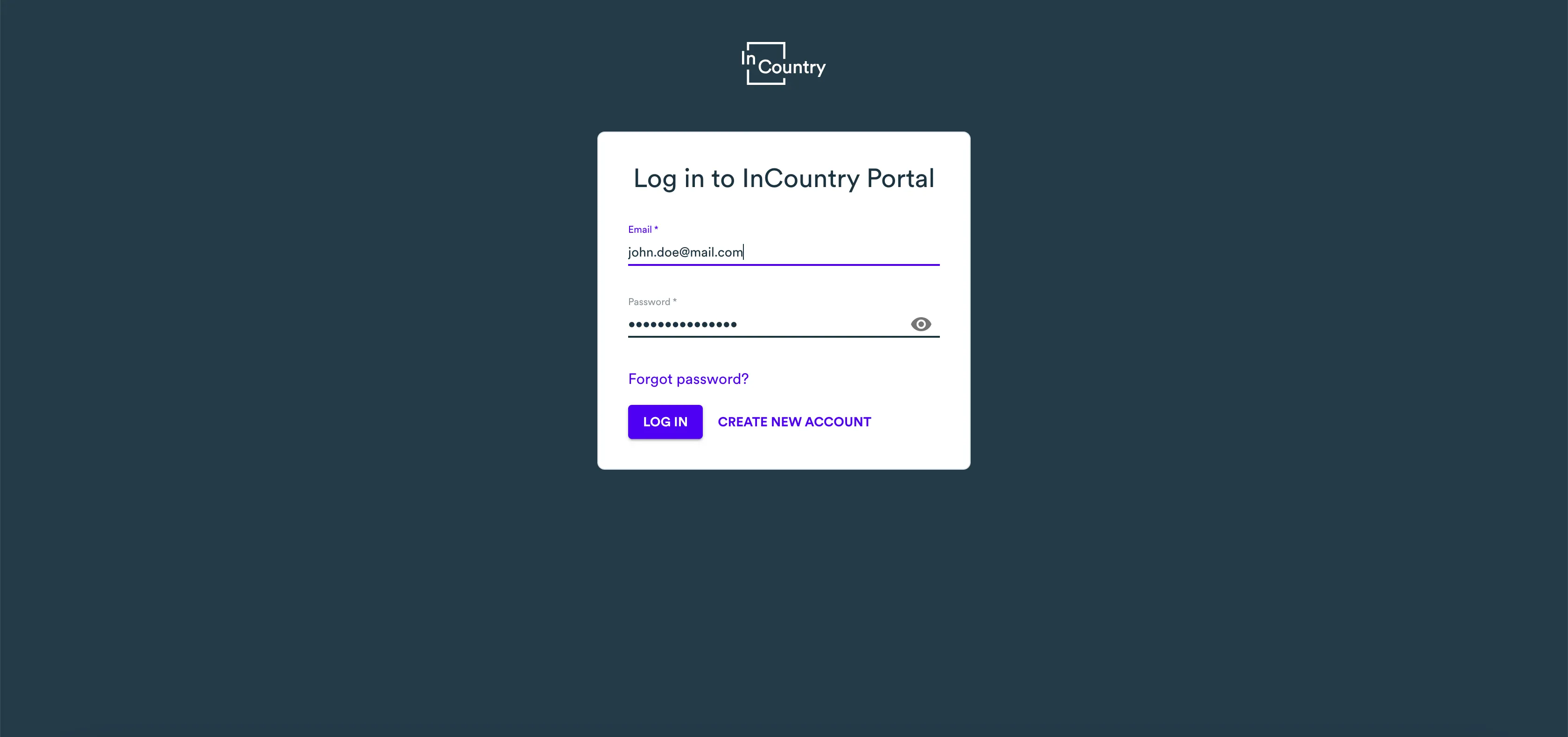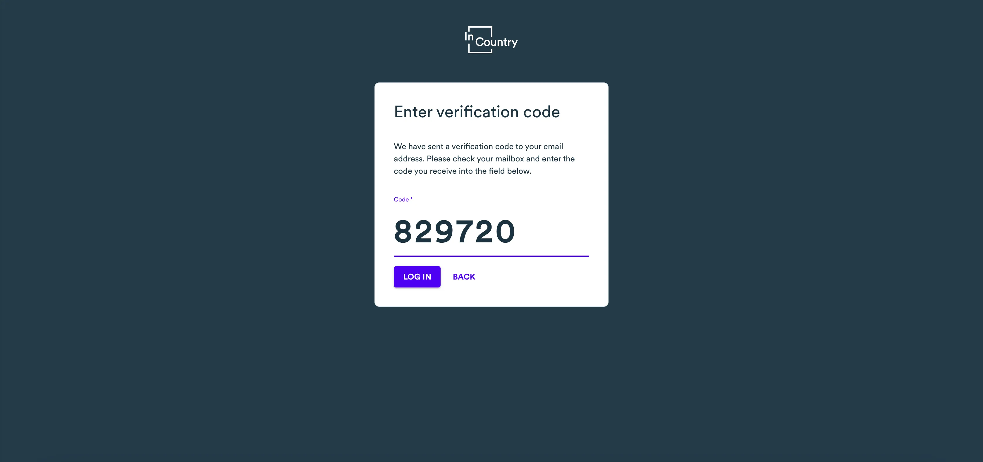 Once you have confirmed your email address, you can proceed with logging in to the InCountry Portal.