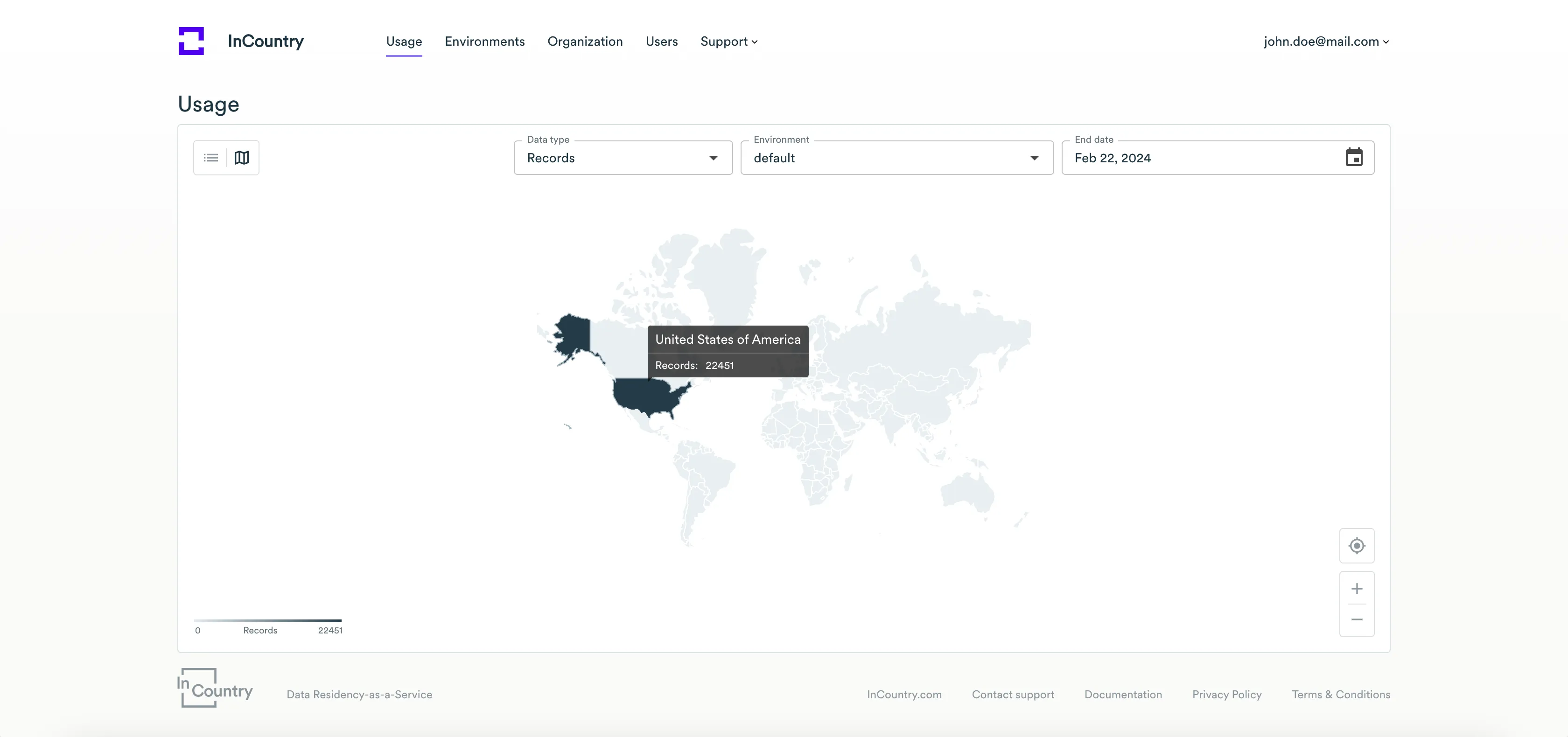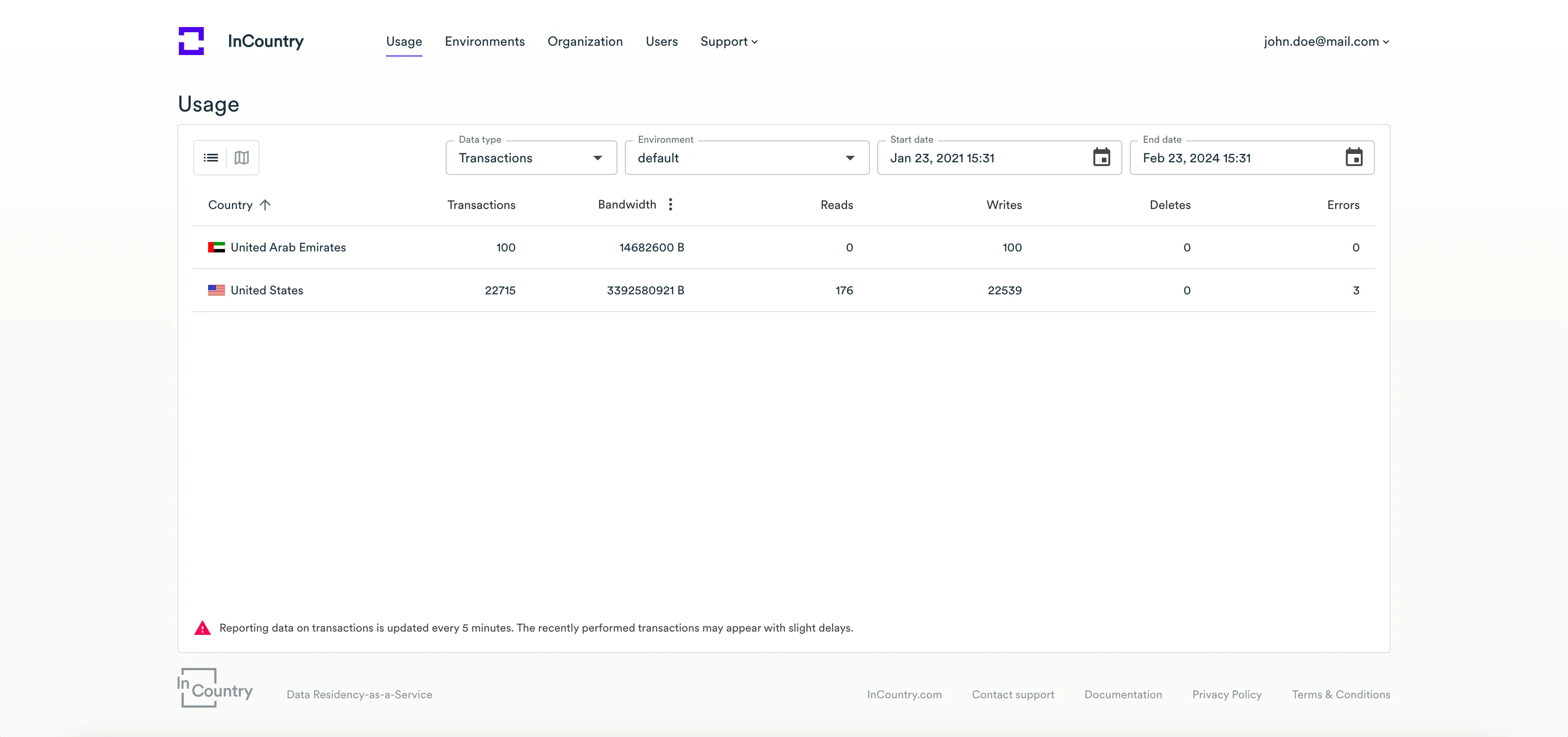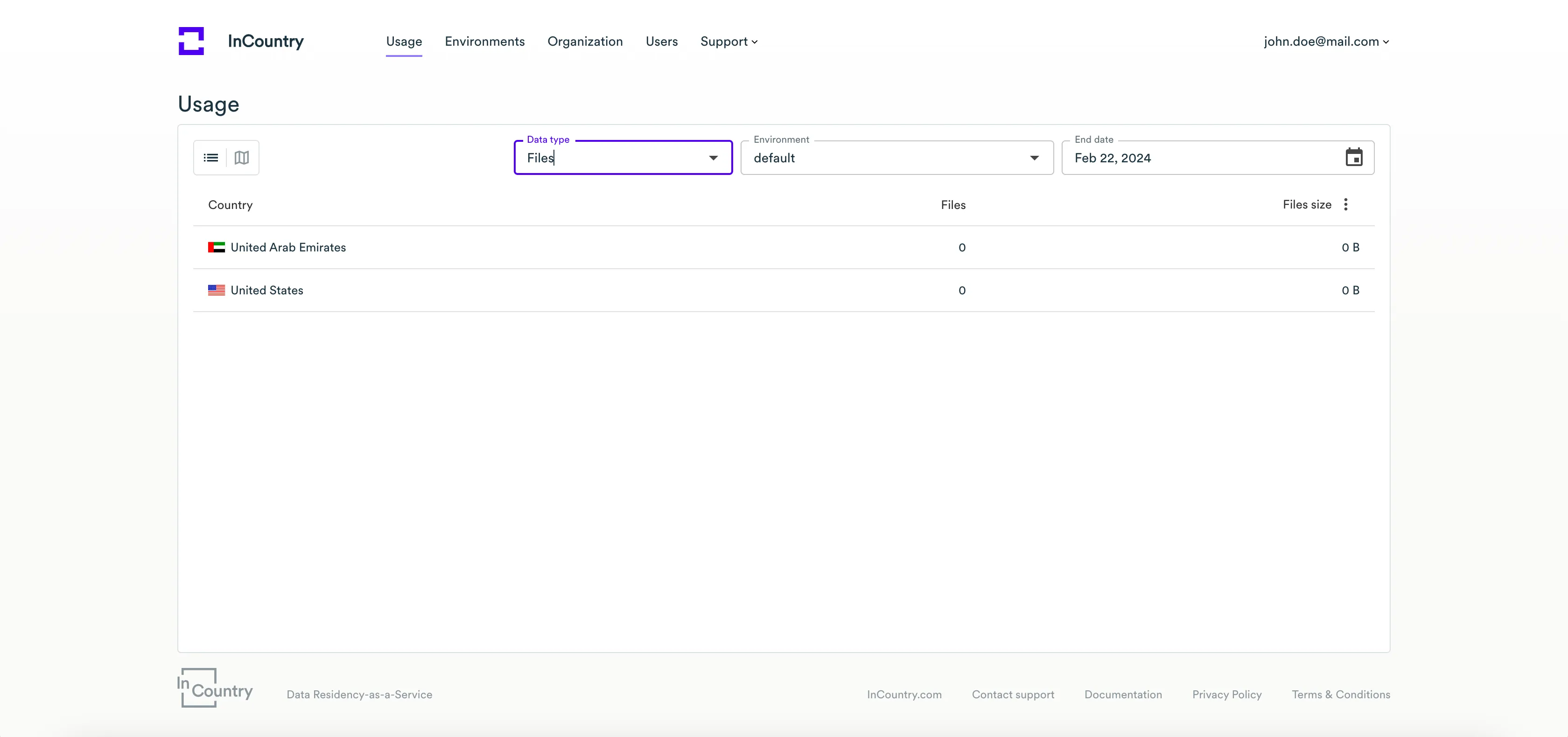 Usage dashboard of the InCountry Portal may show no data and statistics upon the first sign-in to the system.
