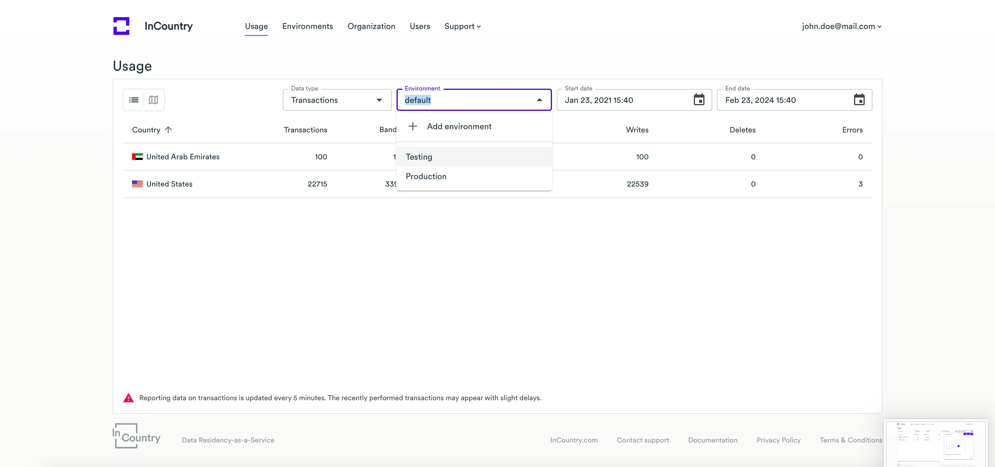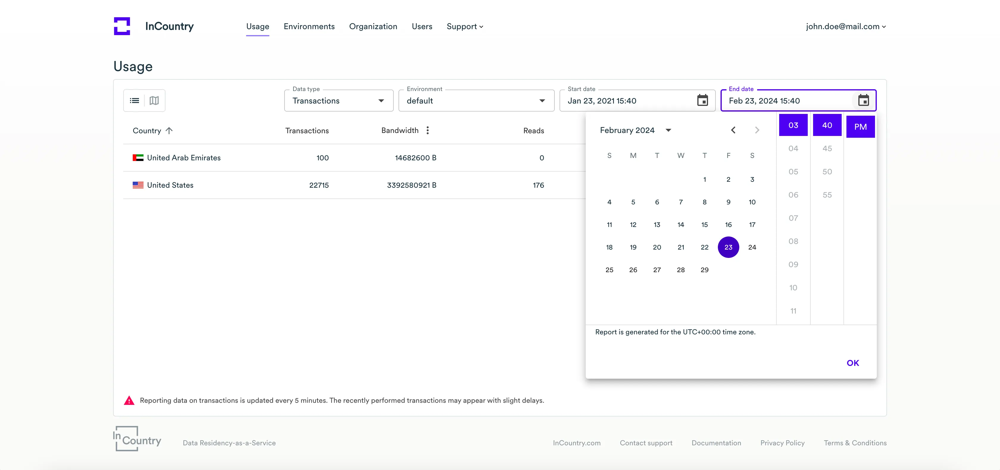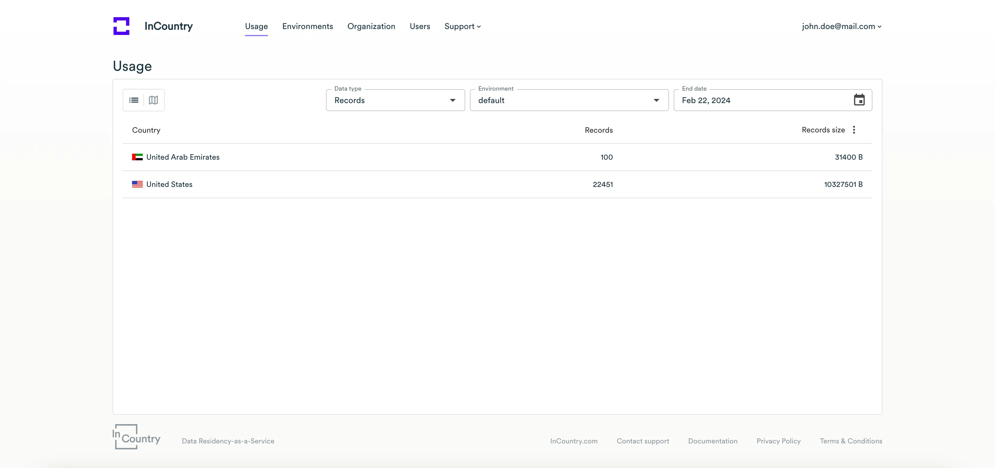 Usage dashboard of the InCountry Portal may show no data and statistics upon the first sign-in to the system.