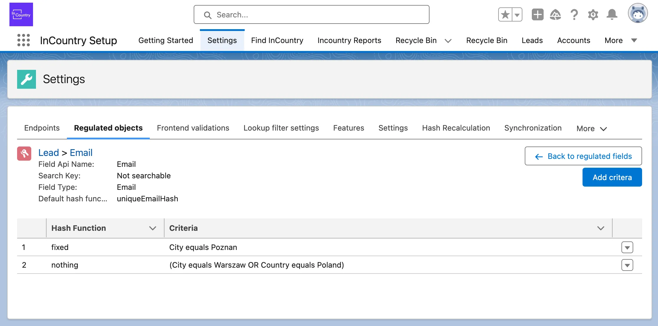 If multiple criteria meet the conditions, the most recently created criterion will be applied, along with its hash function.