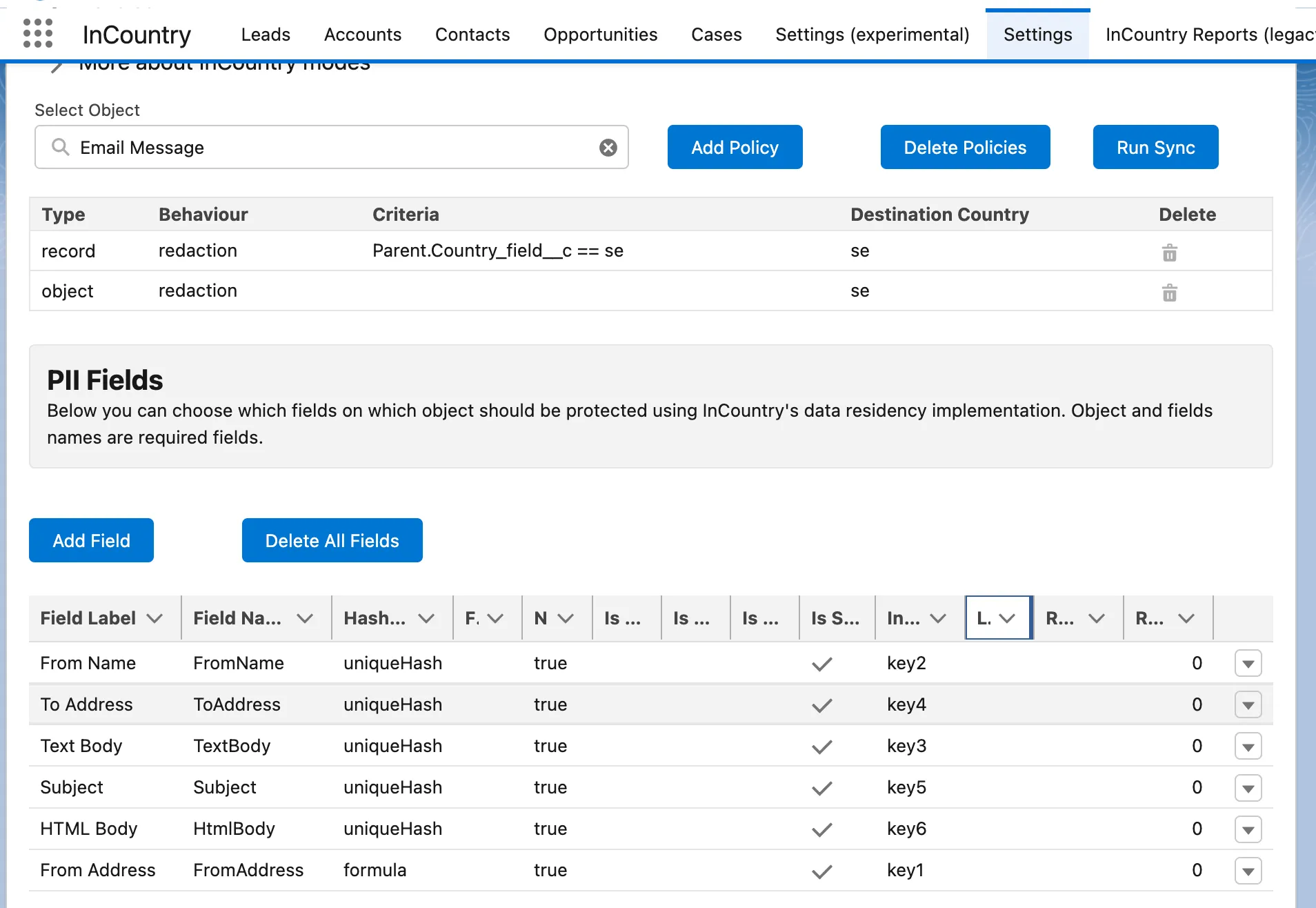 To link the case record and email messages with the InCountry platform, deploy the following code to your Salesforce organization: Download Email-to-Case metadata.