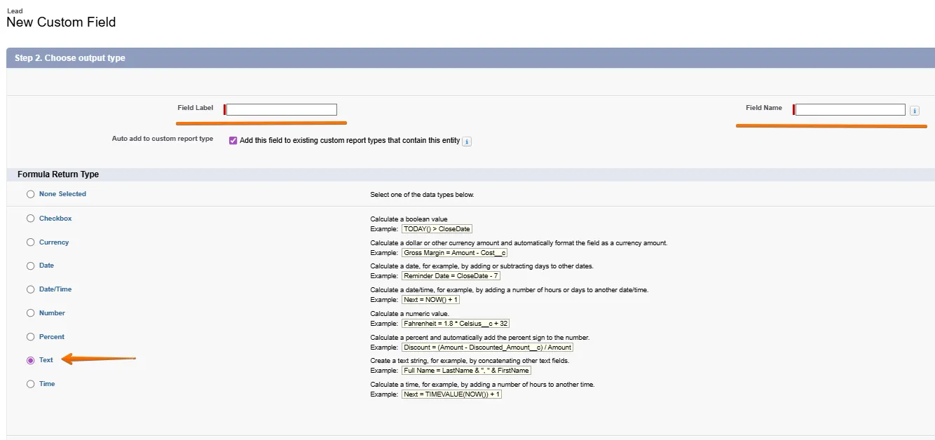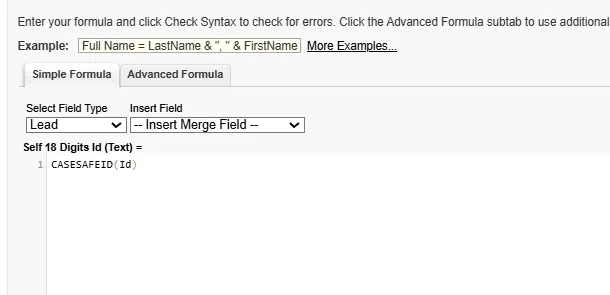SelfId). For the Formula Return Type, select Text.