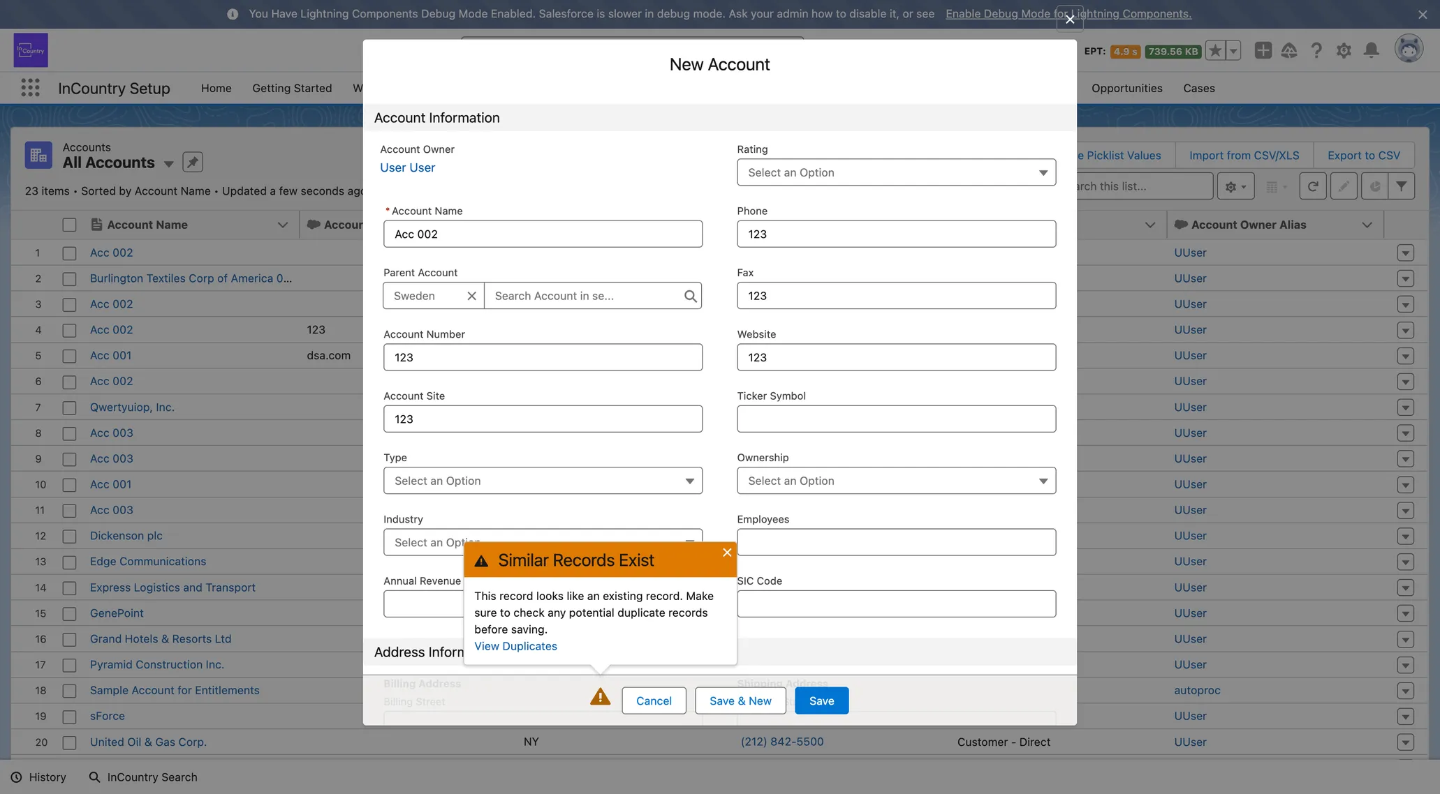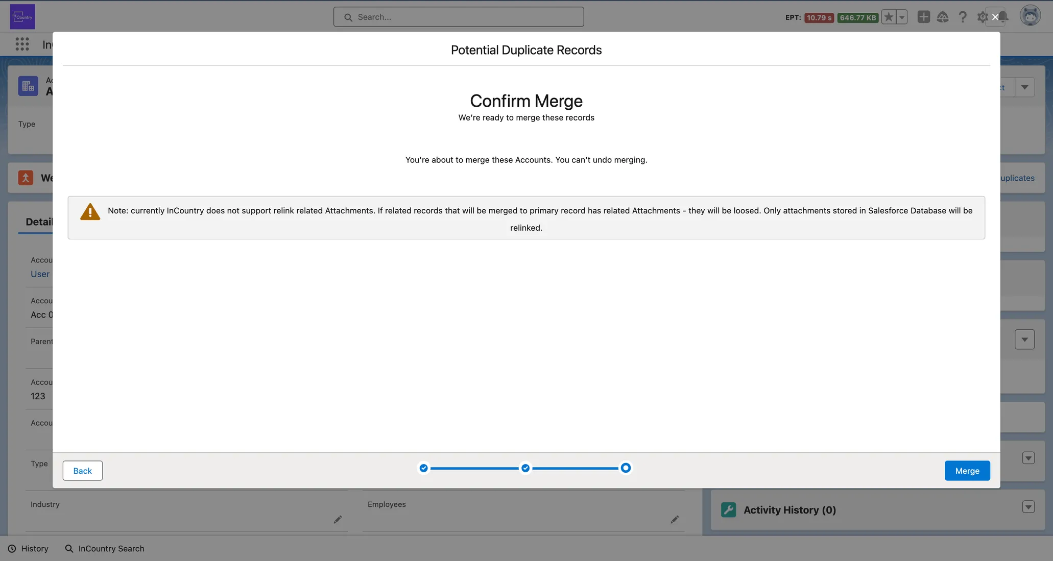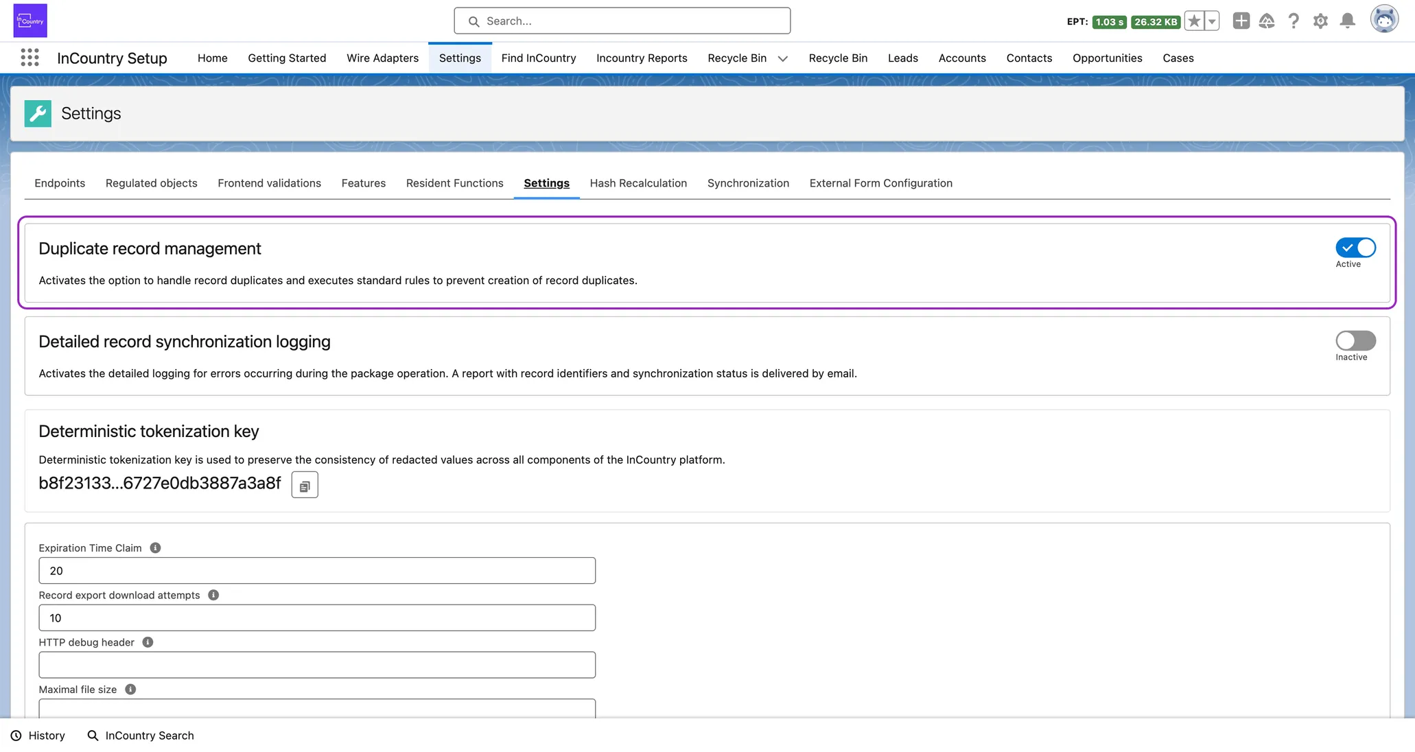 The InCountry duplicate record management feature is based on standard Salesforce duplication rules with some restrictions presented below.