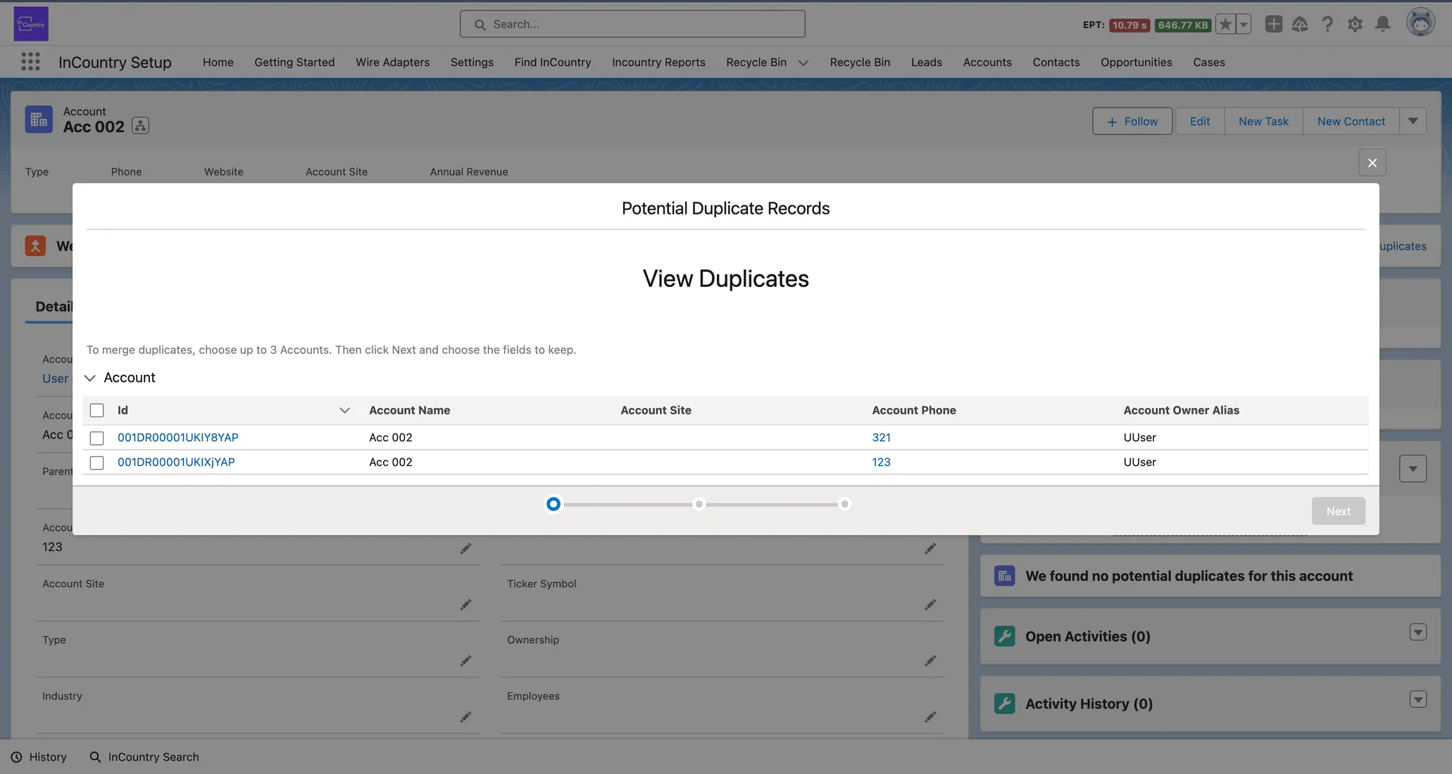 The InCountry Data Residency for Salesforce package lets you manage duplicate records as follows: