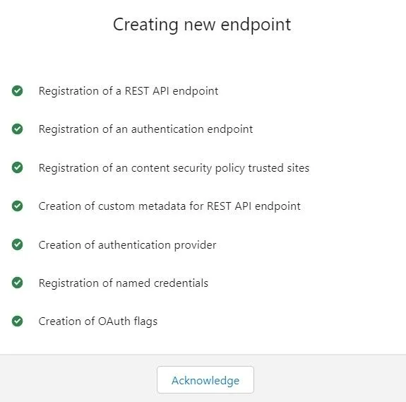 In the Create New Endpoint form, fill out the credentials you received when created a Salesforce service: