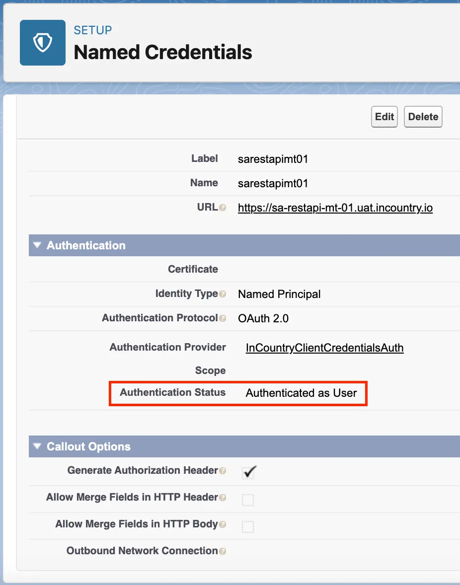 Click Authenticate named credentials. Named credentials specify the URL of a callout endpoint and its required authentication parameters in one definition.