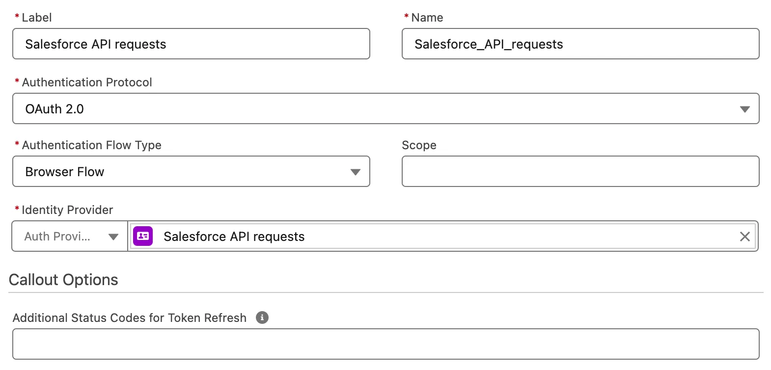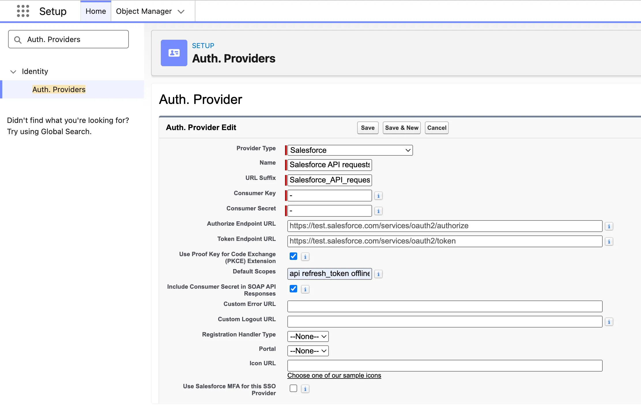Go to Setup → Quick Find Auth. Providers → Click Edit on Salesforce API requests.