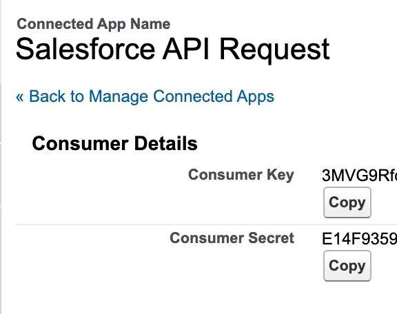 Salesforce_API_requests(This is automatically generated based on the Name. It should be unique). - Consumer Key: