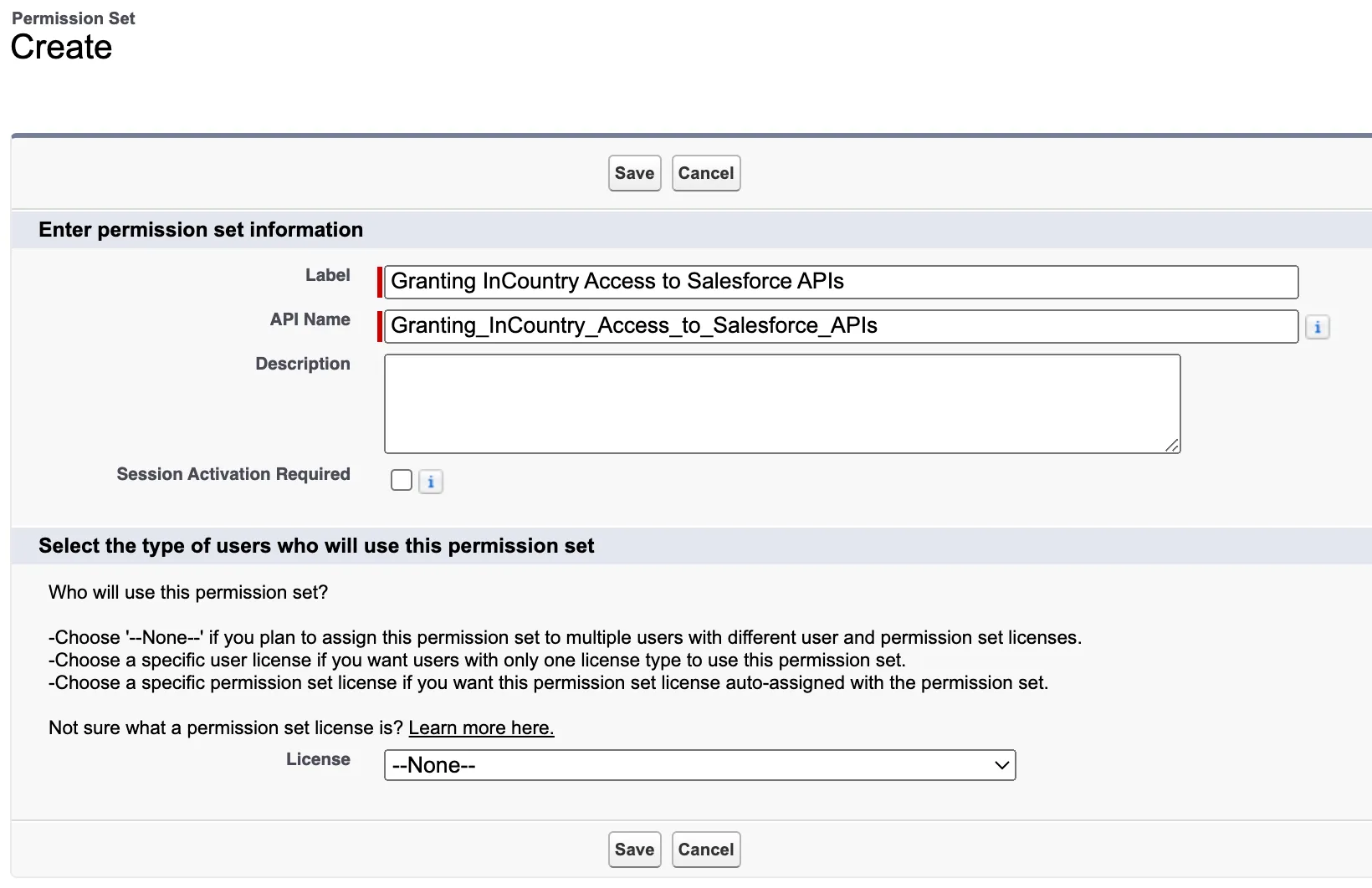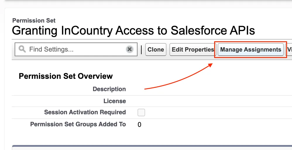 Go to Setup → Quick Find Permission Sets → Open Granting InCountry Access to Salesforce APIs.