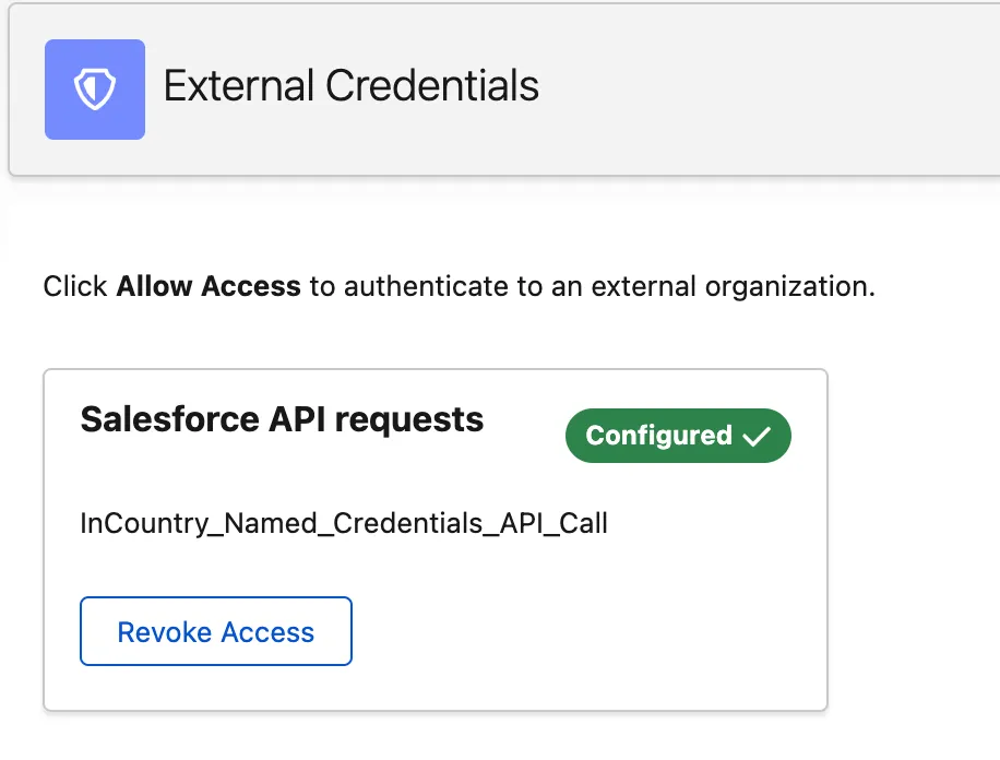 Once the flow is complete, look for the Configured tag displayed above the External Credential.