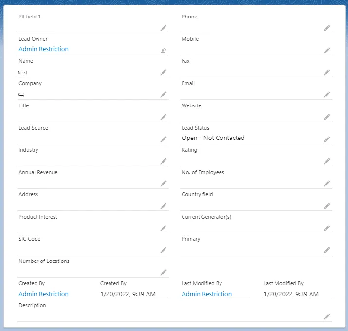 Display fields with sensitive and generic information about records pertaining to the Activity object.