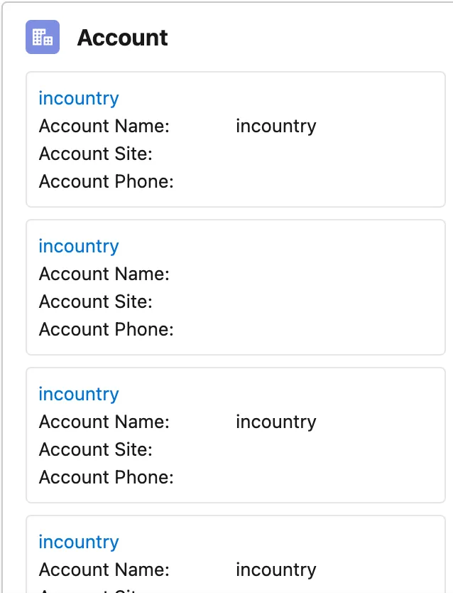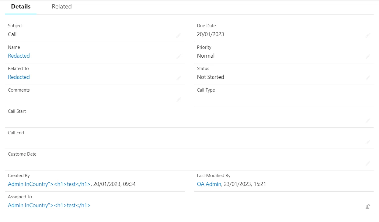 The InCountry Activity Record Detail is a replacement for the native Salesforce component - Record Detail which should be configured specifically for the Activity object. This component renders the block of fields displaying the activity record information.