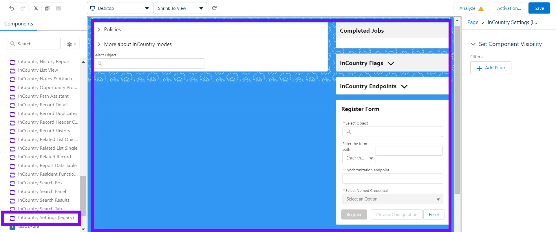 The InCountry Data Residency for Salesforce package provides the following web components: