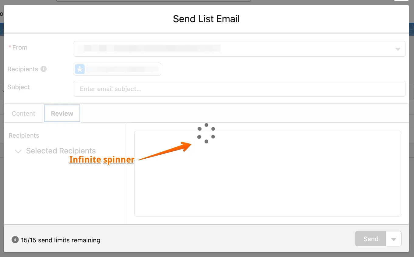 A bug causing an infinite spinner when switching to review mode has been resolved. This issue occurred when the email body contained compound merge fields. The fix ensures smooth transitions to review mode without interruptions.
