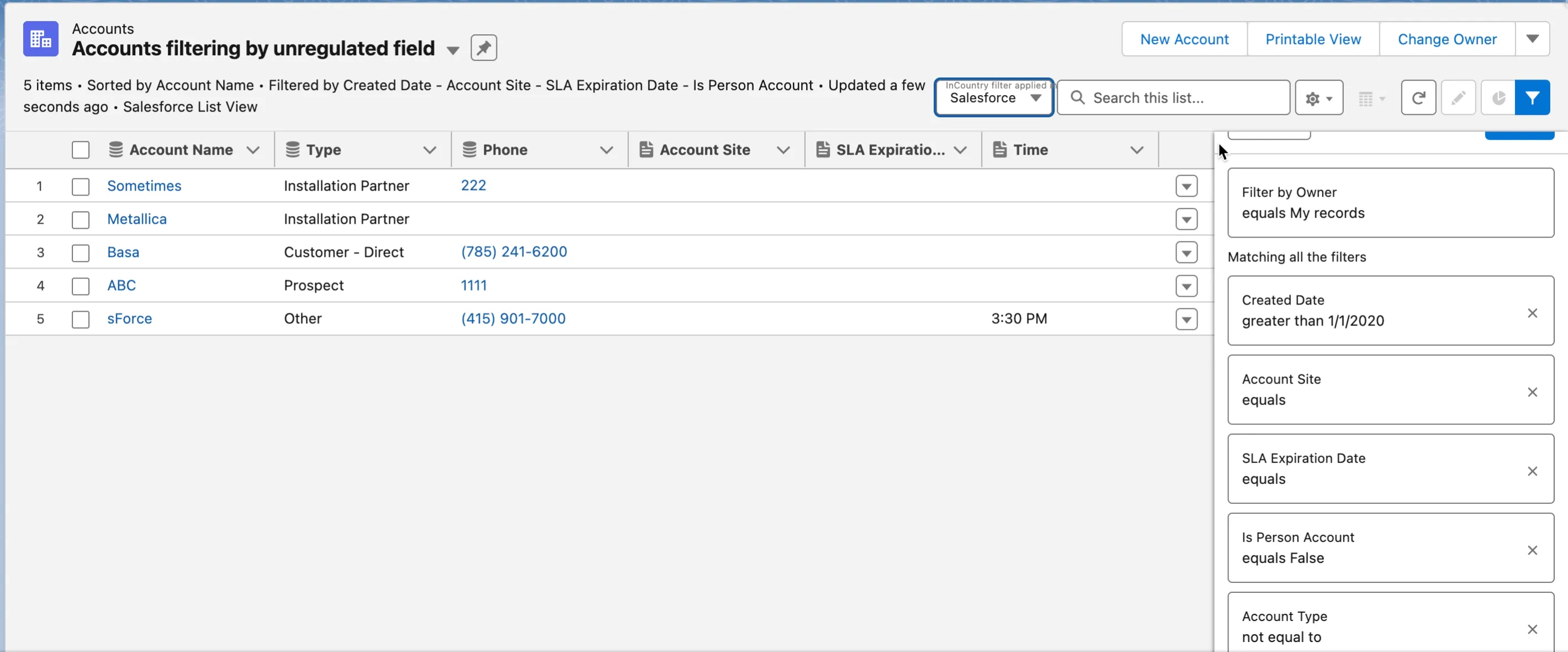 InCountry List View Filtering by Time Fields