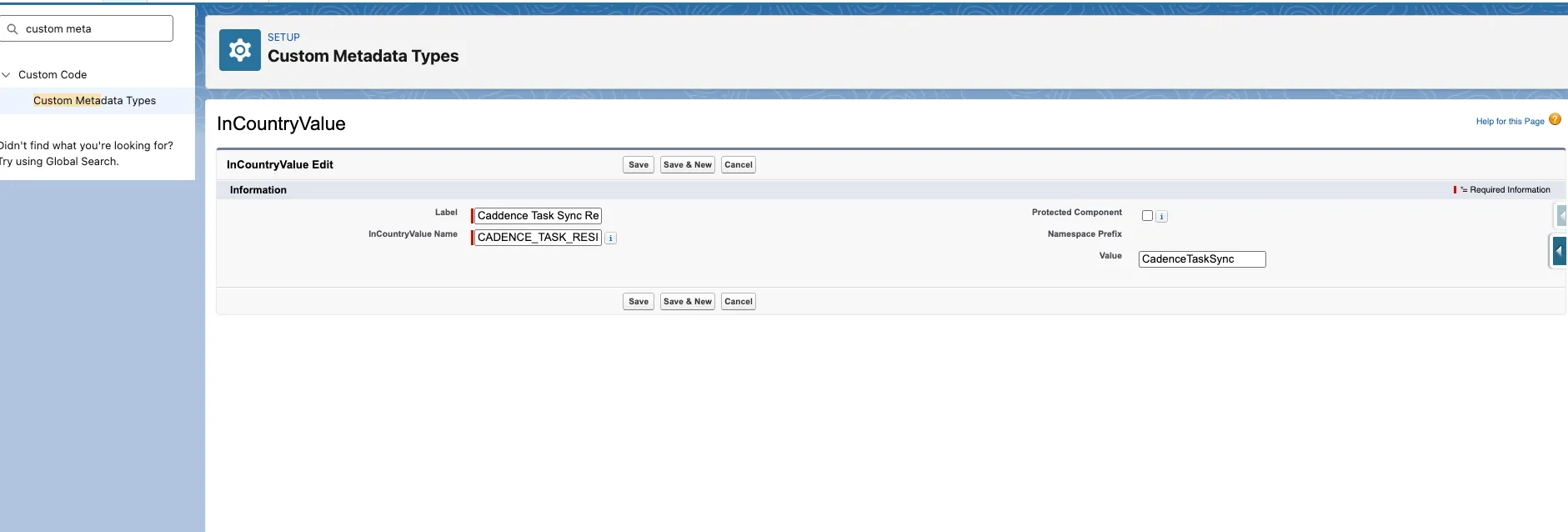 - Go to Setup > Custom Metadata Types