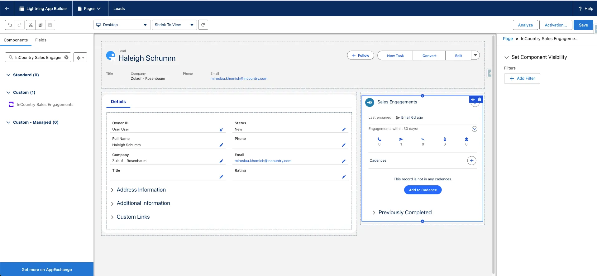 Configuring the InCountry Sales Engagement component