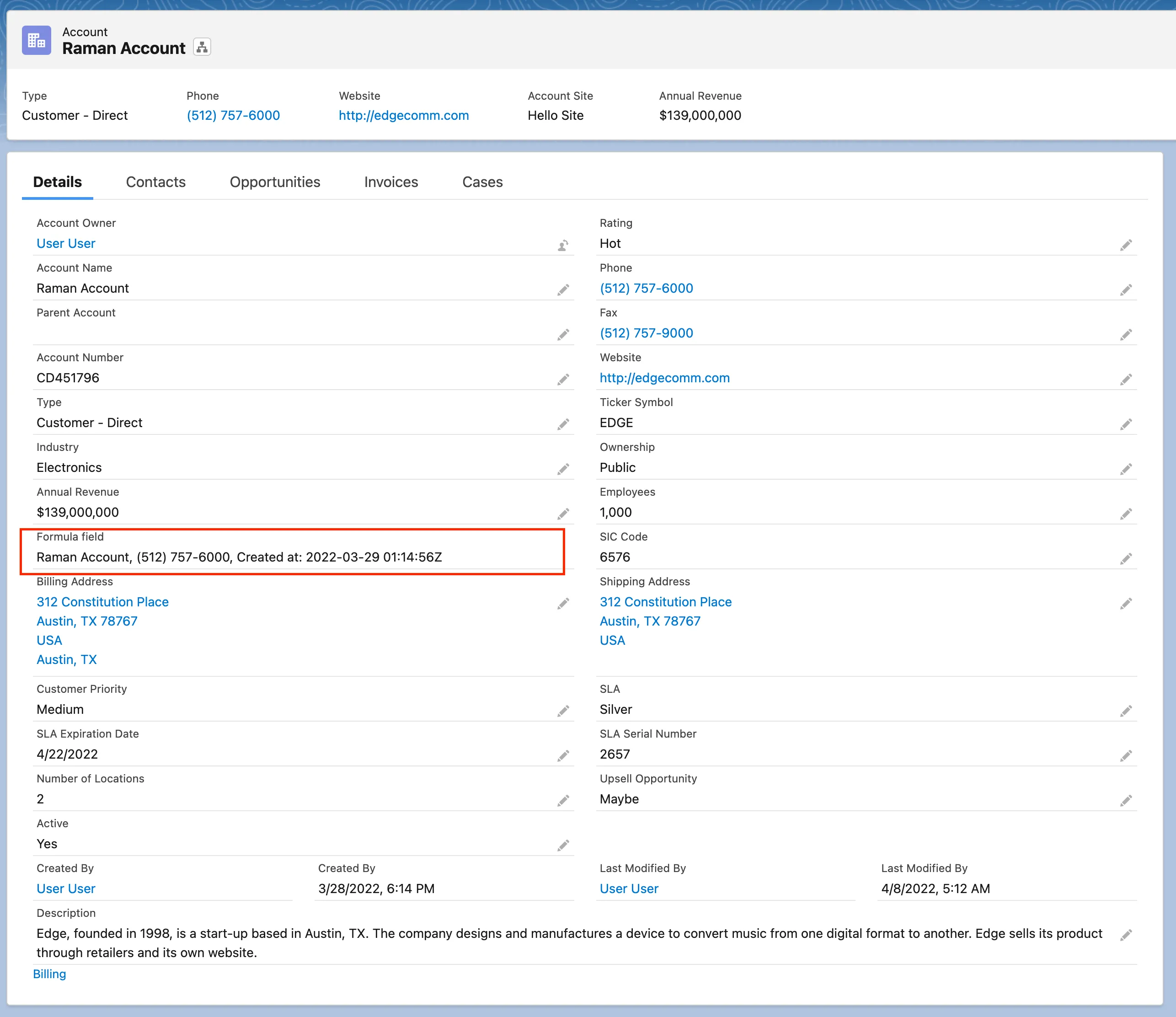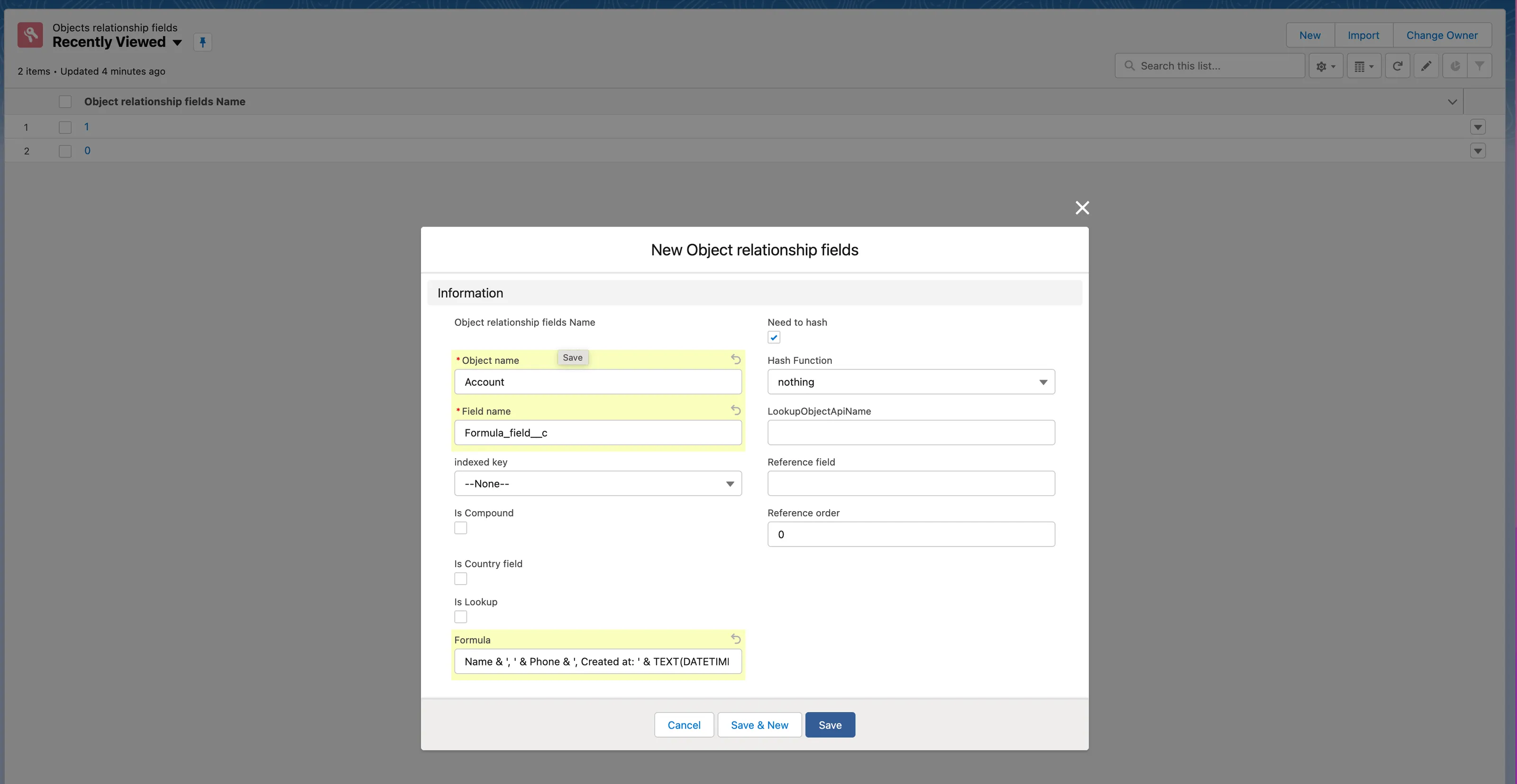 - Formula: Enter the formula created before Name & ', ' & Phone & ', Created at: ' & TEXT(DATETIMEVALUE(CreatedDate))