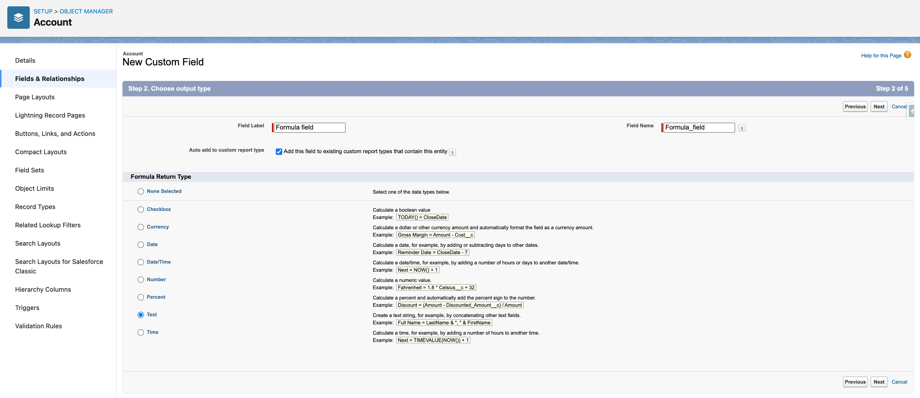 The following instructions explain how to create the Object Relationship field for the Account object. The same flow can be used for other Salesforce with minor changes in the configuration.